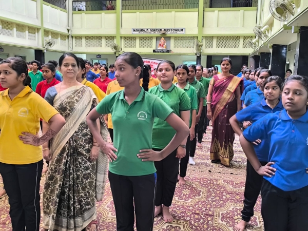 students gathered for yoga day