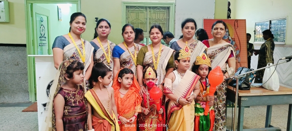 students dressed as characters from ramayana along with teachers who assisted them